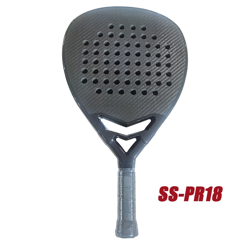 Prispôsobený dizajn Diamond 3K Carbon Padel Racket s inteligentným mostovým modelom SS-PR04je plná uhlíková raketa. V prípade štandardného SS-PR18 sú tvárové materiály 3K uhlíkové vlákno, rámový materiál je plný uhlík a pamäťové jadro EVA. 3K uhlíkom je populárne materiály, je to osnovné a útkové pletenie, zahŕňajú výhody sklenených vlákien a uhlíka, stabilný výkon. Srdcová oblasť špeciálne skonštruovaná s inteligentným mostom pre ďalšiu presnosť a kontrolu.